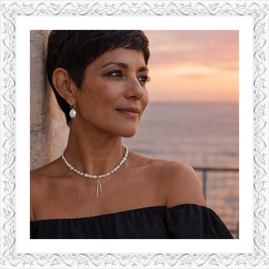 ラフな装いにそっと寄り添い、パールのやわらかな光が、日常に静かな品をもたらしてくれます。